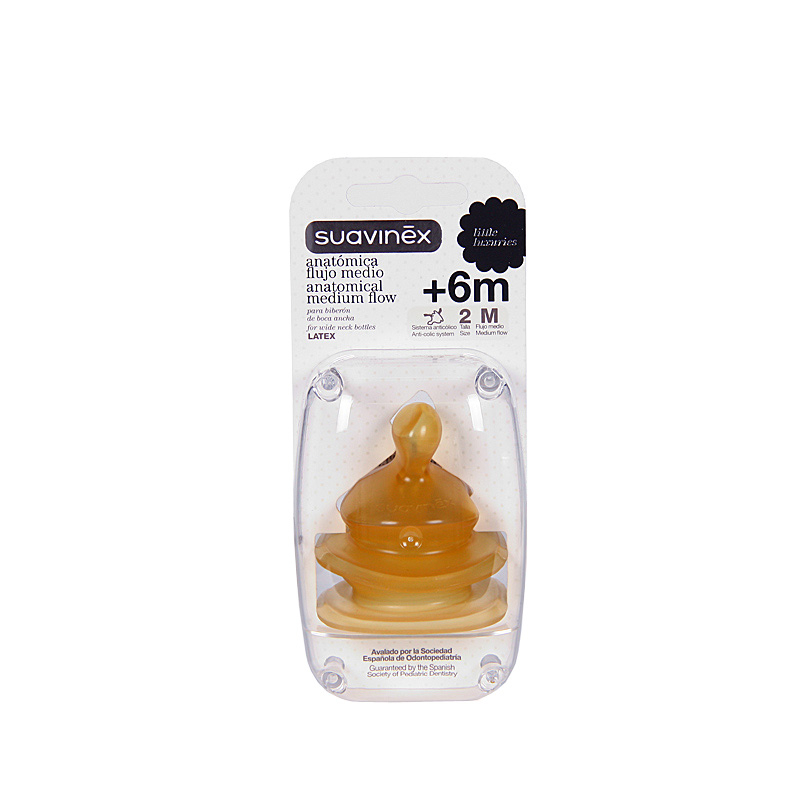 Especialmente pensada para los biberones de Boca Ancha de Suavinex. 100% Natural Látex.