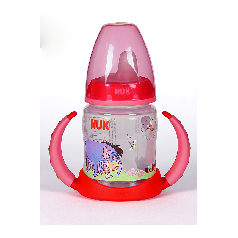 Limpieza de biberones, tetinas y accesorios: Antes de usarla por primera vez, colóquela en agua hirviendo durante 5 minutos, utilice suficiente agua para evitar dañar la tetina. Para garantizar la higiene, límpiela bien con un líquido limpiador suave y esterilícela antes de volver a usarla. Recomendamos el NUK Vapo Rapid para la esterilización. Para hervir el biberón o para esterilizarlo por vapor (temperatura superior a 80 °C), desmonte siempre todas las piezas y déjelo abierto, ya que de lo contrario se puede deformar. Algunos nutrientes de determinadas bebidas (por ejemplo el zumo de zanahorias) puede cambiar el color del material o su olor (por ejemplo la infusión de hinojo). Esto no produce ningún deterioro del biberón, y no afecta a su aptitud para el uso ni a su seguridad. Las tetinas y los biberones no son aptos para el lavavajillas - los detergentes podrían dañar el material. Esterilizar en el microondas, usando el Esterilizador Microondas NUK para evitar daños en el material.