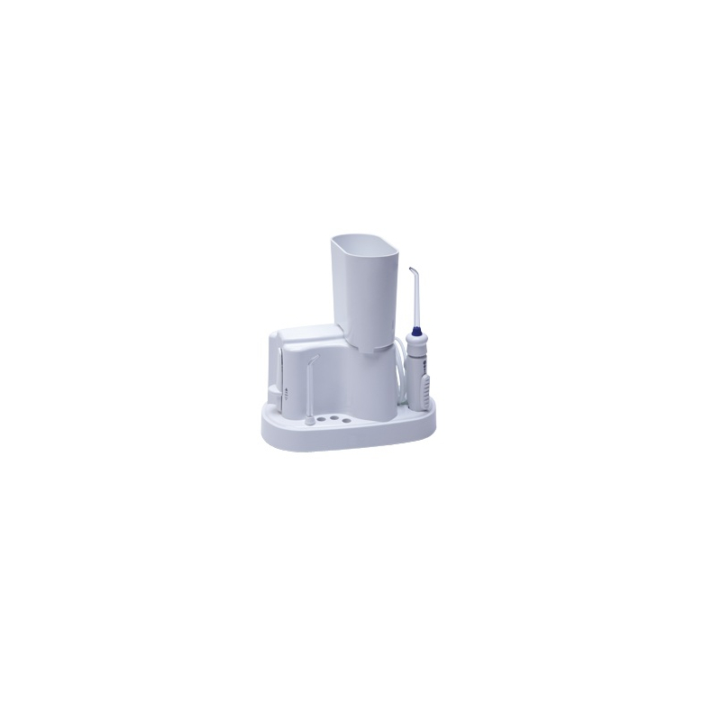 Depósito de 350ml que proporciona más de 45 segundos de capacidad de irrigación. Tiene 6 intesidades de chorro distintos y botón de control de parada. Incluye 2 boquillas.