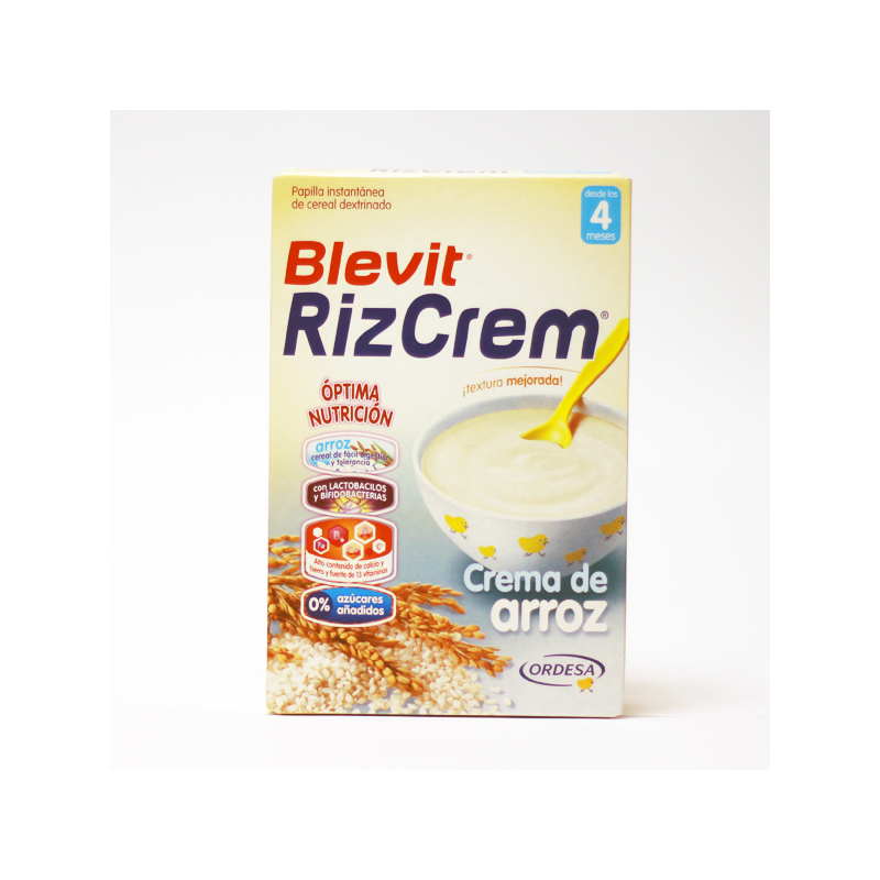 Harina de cereal dextrinado 93% (Arroz), Dextrinomaltosa, Sales minerales (calcio, hierro), Complejo vitamínico (Vitaminas: C, Nicotinamida, E, Pantotenato cálcico, B6, B2, B1, A, Ácido fólico, K, Biotina, D, B12), Aroma, probióticos (Bifidobacterium infantis y lactobacillus rhamnosus).