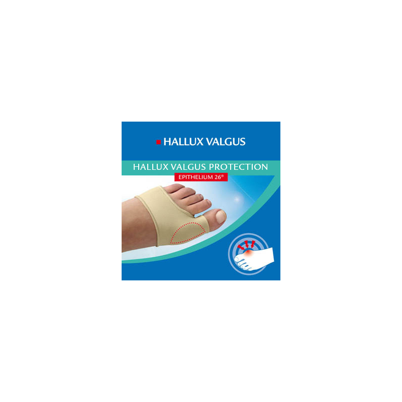 El protector está compuesto de Epithelium 26 de un espesor de 1 mm. Es un gel de silicona patentado, cuyas propiedades viscoelásticas y mecánicas se asemejan a las de los tejidos de la piel. Reparte las presiones y reduce los rozamientos que provocan dolor en los juanetes.