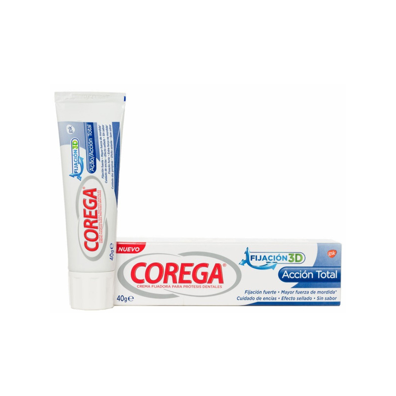 Extienda Corega total en tres puntos separados de su prótesis, dejando libres los bordes.