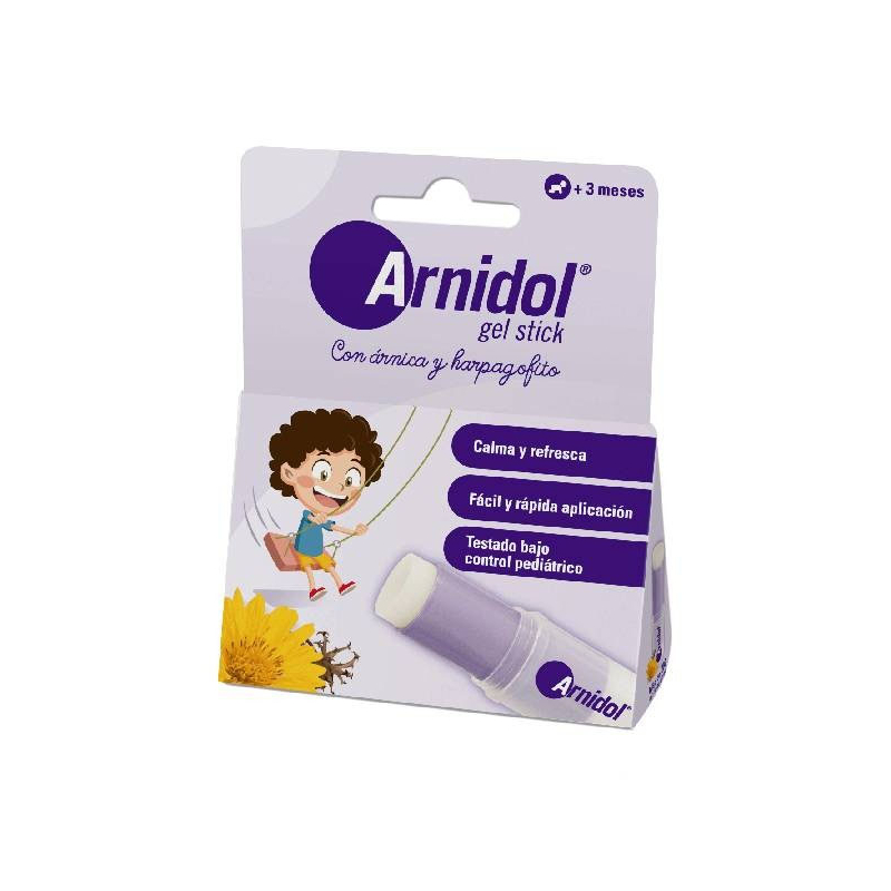 Cuando los niños se caen y golpean, sin tener heridas abiertas, se aconseja limpiar la zona y frotar con Arnidol morados y golpes, efectuando movimientos circulares según sea neceario.